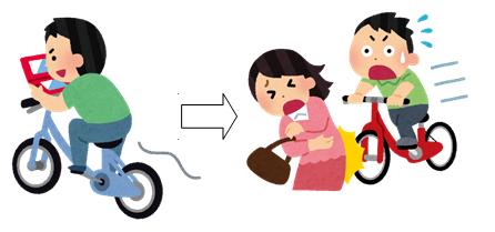 例 彼は、ゲームをしながら自転車に乗ったあげく、道を歩いている女の人にぶつかってしまった。