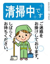 ※お知(し)らせ、注(ちゅう)意(い)など 例 こちらのトイレは、ただいま清掃中せいそうちゅうにつき、お使いいただけません。
