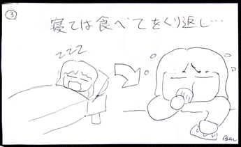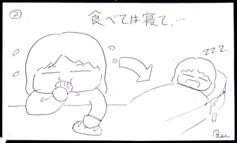 例3 私の姉は、寝ては食べてばかりいて、1か月後太ってしまった。